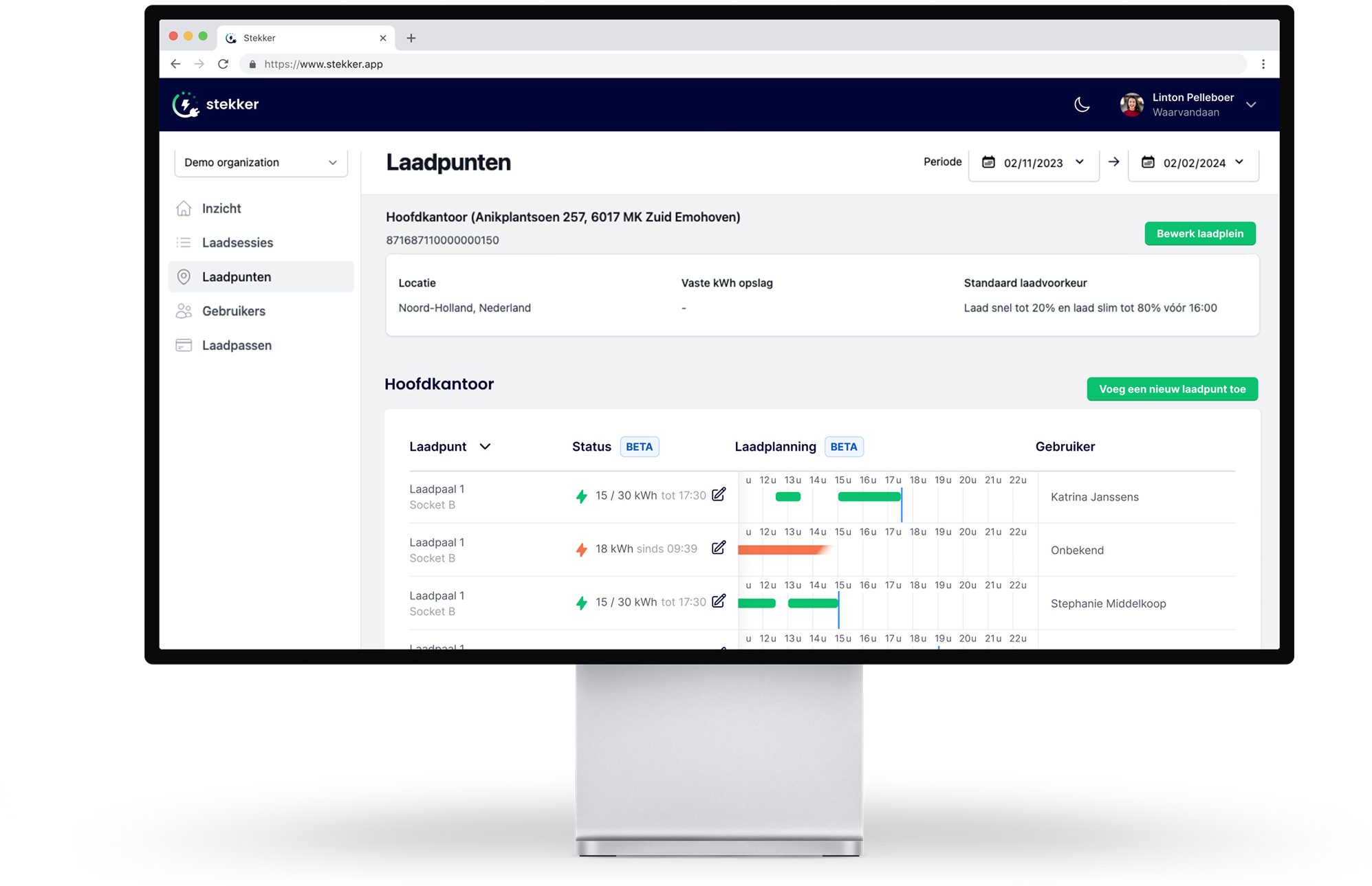 Stekker finds the ideal balance between the charging infrastructure, the electrical grid, and the needs of the users or organization.